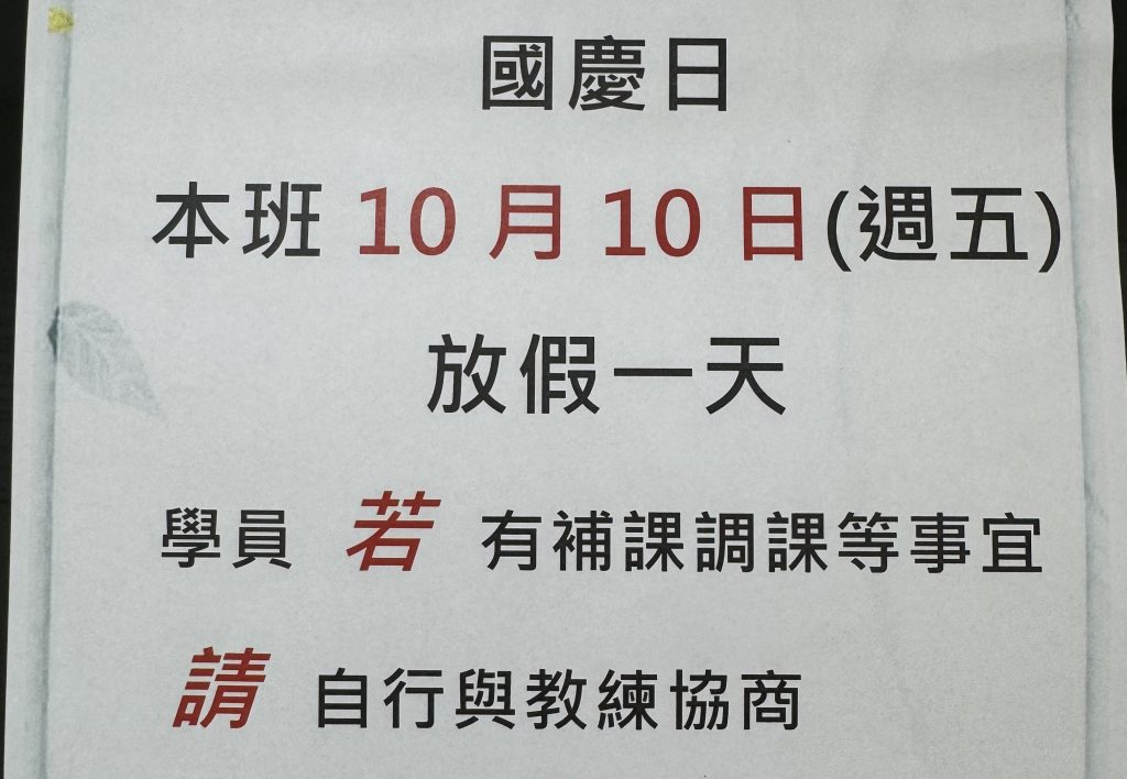 10月10日(五)國慶日放假一天
